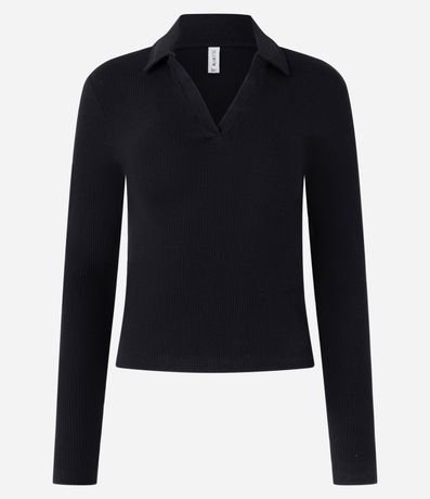 Ref: Blusa manga longa, confeccionada em ribana e com golinha polo.