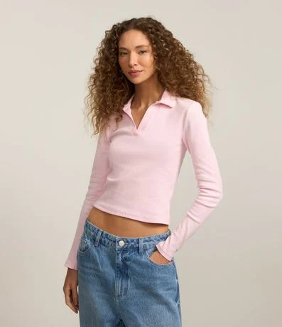 Ref: Blusa manga longa, confeccionada em ribana e com golinha polo.