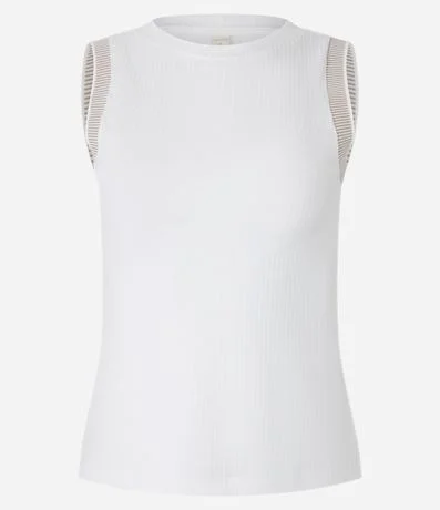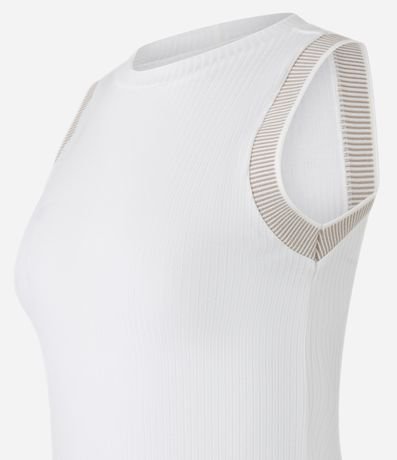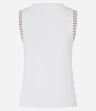 Ref: Blusa sem mangas confeccionada em ribana com viscose mais sustentável. Peça tem gola redonda, cavas com pequenas listras além de todo tecido canelado.