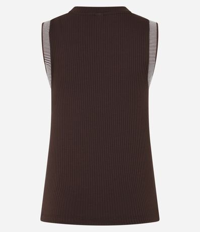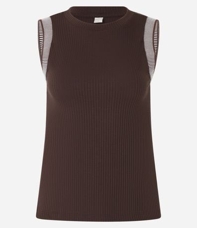 Ref: Blusa sem mangas confeccionada em ribana com viscose mais sustentável. Peça tem gola redonda, cavas com pequenas listras além de todo tecido canelado.