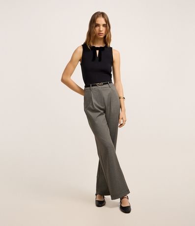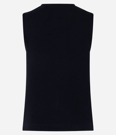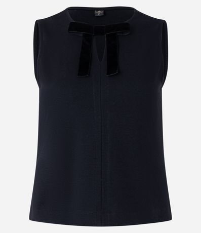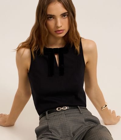 Blusa sem mangas confeccionada em ribana de algodão mais sustentável. Peça com gola redonda e laço contrastante.