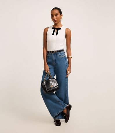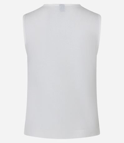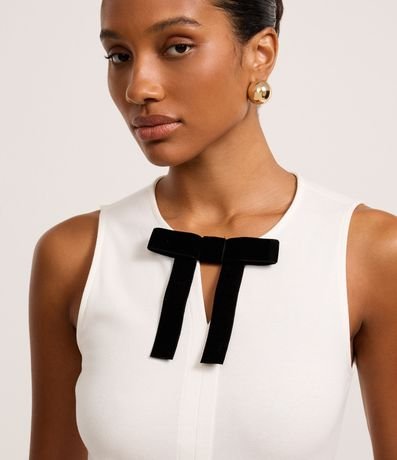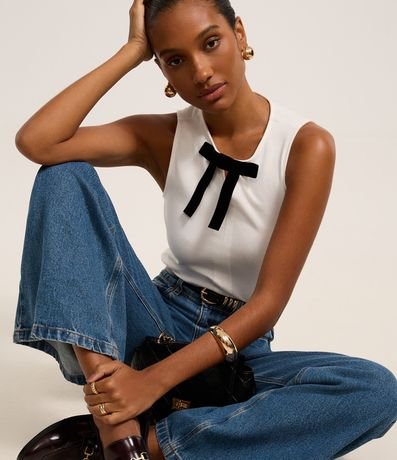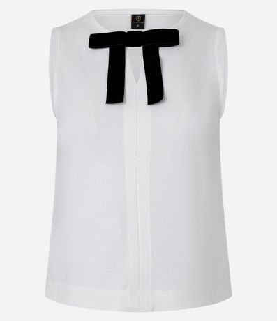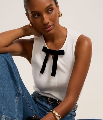 Ref: Blusa sem mangas confeccionada em ribana de algodão mais sustentável. Peça com gola redonda e laço contrastante.