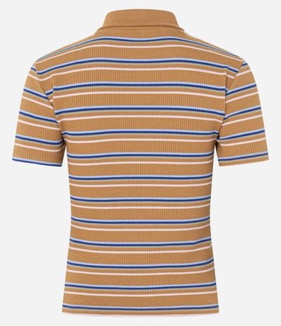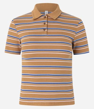 Blusa polo com manga curta, botões no decote, confeccionada em ribana e com listras duplas.