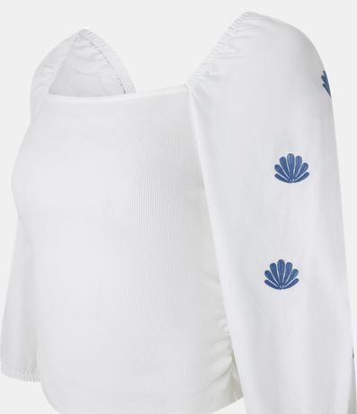 Blusa em Ribana com Manga Bufante e Bordado de Concha