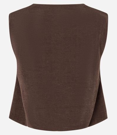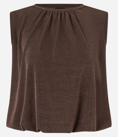 Ref: Blusa sem mangas e com gola redonda. Gola com franzidos e tecido levemente brilhante.