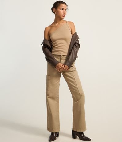 Ref: Blusa um ombro só com alcinha fina, confeccionada em ribana produzida com boas práticas ambientais e leve textura.