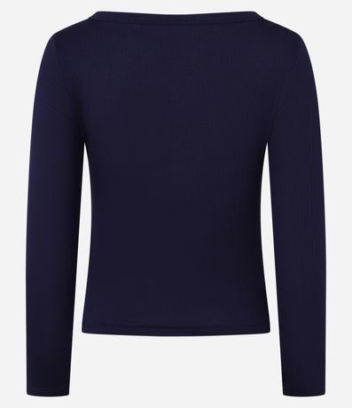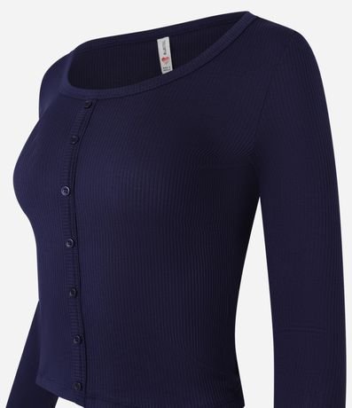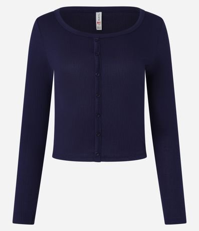 Ref: Blusa manga longa, confeccionada em ribana com boas práticas ambientais, leve textura de listrinhas e botões frontais.