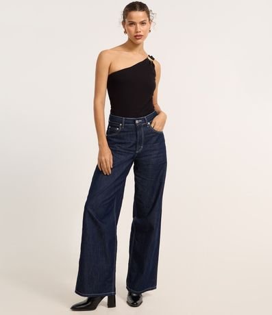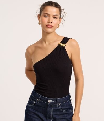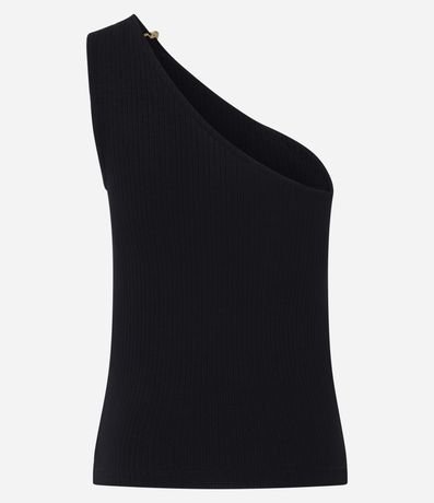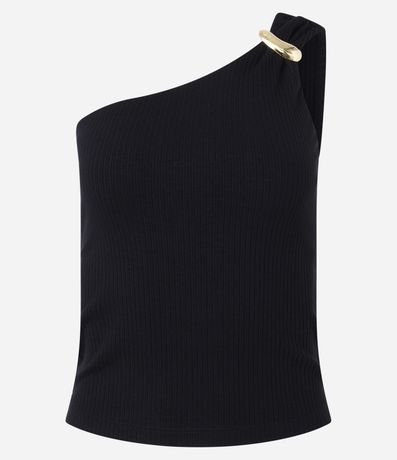 Blusa com decote um ombro só, confeccionada em ribana com elastano e aviamento em metal na alça.