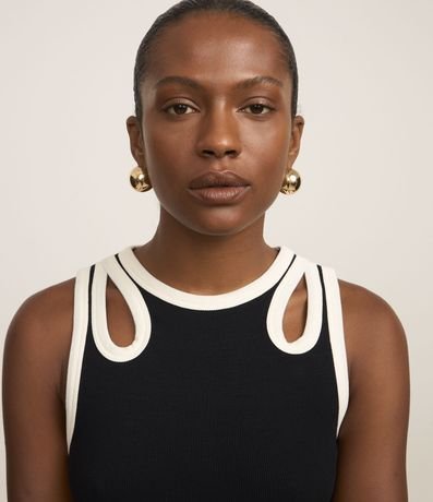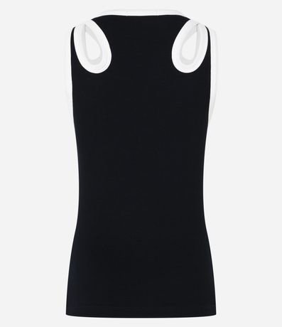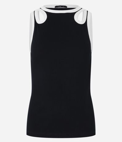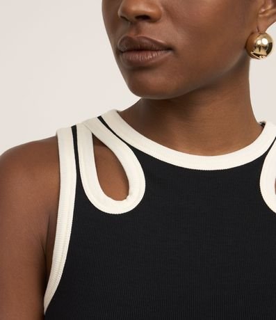 Blusa sem mangas, confeccionada em ribana de viscose mais sustentável com elastano. Possui alças largas com aberturas vazadas em formato gotas. Conta também contraste nos vazados, gola e cavas.
