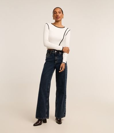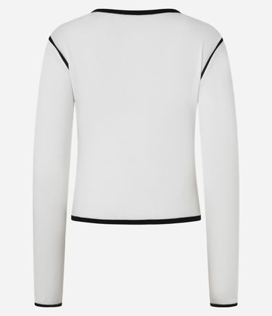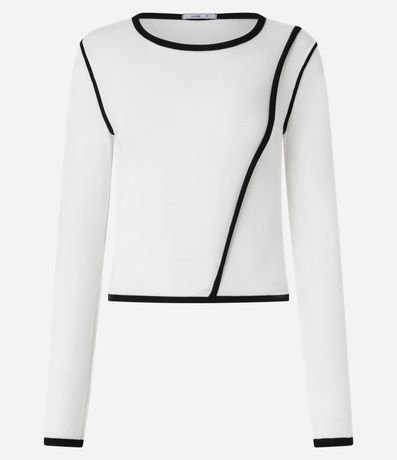 Ref: Blusa manga longa, confeccionada em ribana com viscose certificada mais sustentável e vieses contrastantes.