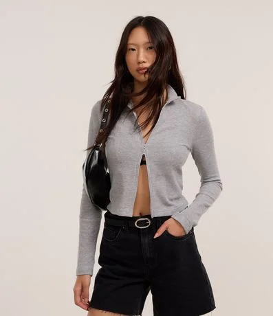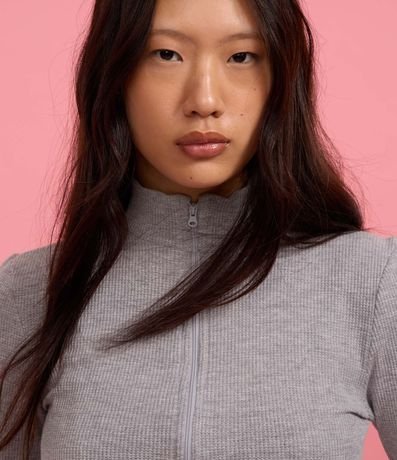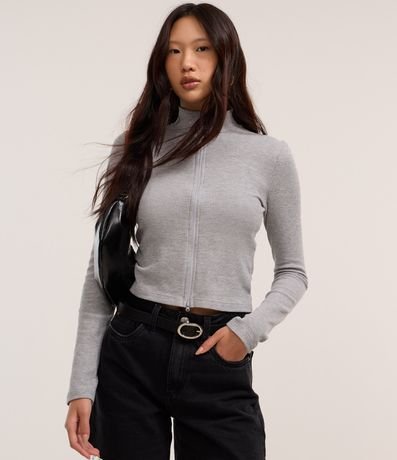 Ref: Blusa manga longa, confeccionada em ribana com algodão bci, golinha alta e fechamento por zíper frontal.
