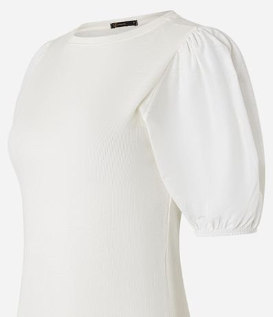 Blusa em Ribana e Tricoline com Manga Bufante