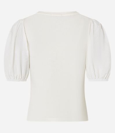 Blusa de mangas curtas bufantes, confeccionada em ribana no corpo e em tricoline nas mangas, com gola redonda. A roupa tem tronco com textura canelada. Este produto possui algodão certificado BCI em sua composição, além de ter sido produzido através de processos mais sustentáveis com boas práticas ambientais, sendo ambientalmente mais responsável.