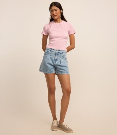 Ref: Blusa slim com manga curta, cava raglan e confeccionada em ribana. Possui efeito estonado.