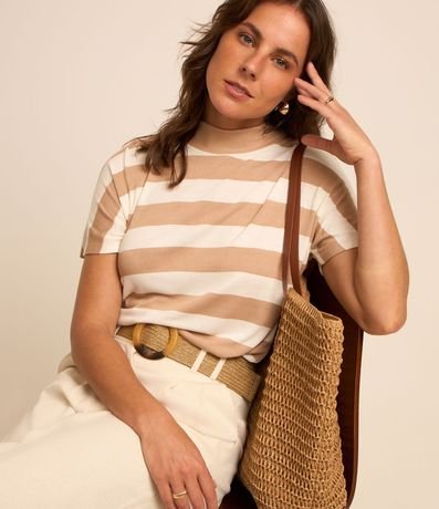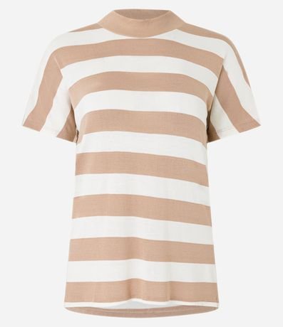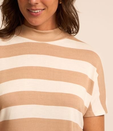 Ref: Blusa feminina, confeccionada em material mais sustentável, sem cava, gola alta. Peça em ribana com listras horizontais contrastantes.