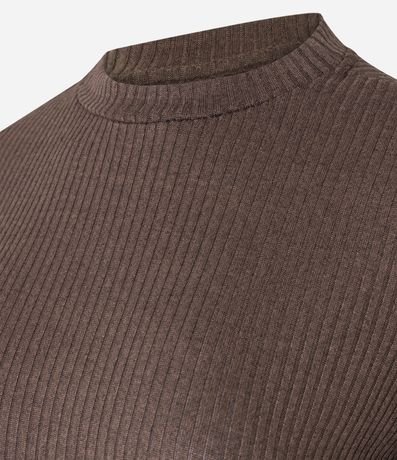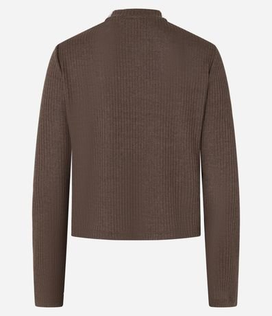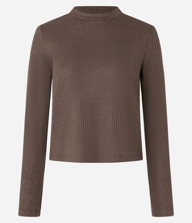 Blusa manga longa confeccionada em ribana texturizada e com gola redonda levemente alta.