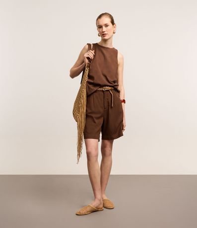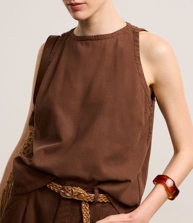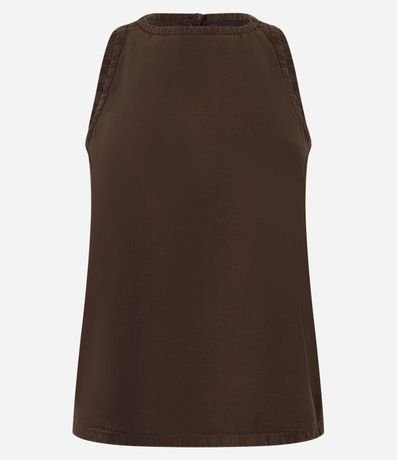 Ref: Blusa sem manga, confeccionada em sarja, sem estampa e fechamento gota nas costas.