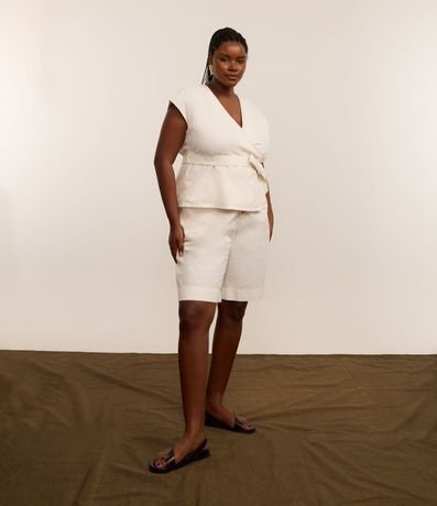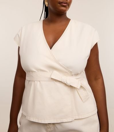 Blusa em Sarja Transpassada com Faixa para Amarração