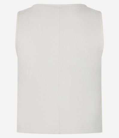 Ref: Blusa sem manga com decote quadrado, confeccionada em suede com boas práticas ambientais e sem estampa.