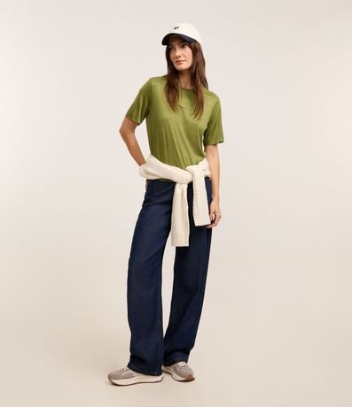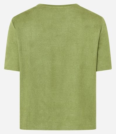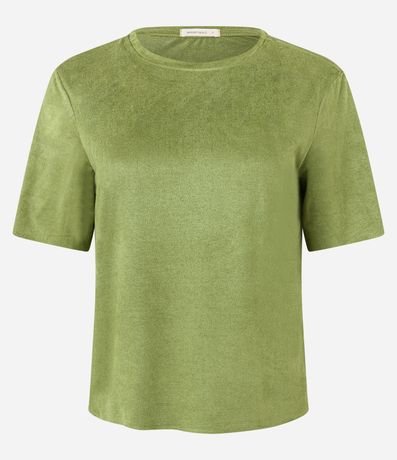 Blusa de mangas curtas, confeccionada em suede, com gola redonda. Este produto foi fabricado através de processos mais sustentáveis, adotando boas práticas ambientais.