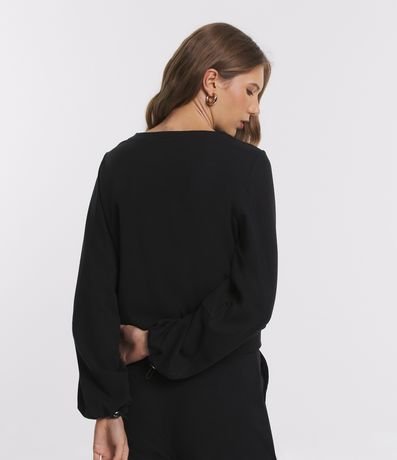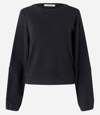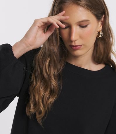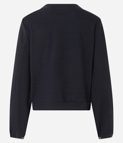 Ref: Blusa em suedine, com gola redonda, mangas longas, punhos ajustados e textura canelada.