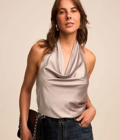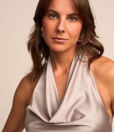 Ref: Blusa feminina, com tecido acetinado, sem manga e decote degagê, que permite elegância e sensualidade para a peça.