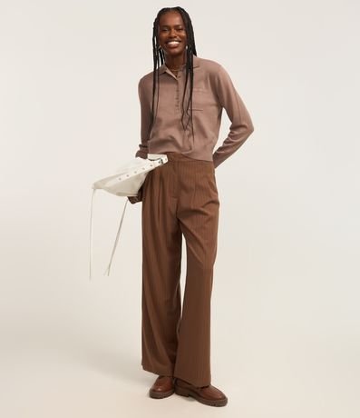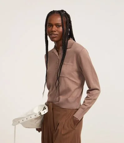 Blusa em Tricô com Abotoamento e Bolsinho Solo