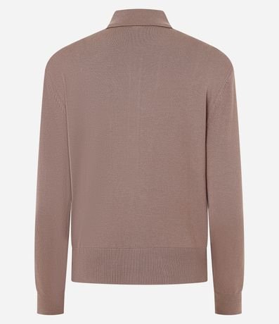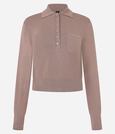 Blusa feminina, confeccionada em tricô, com gola lapela, abotoamento, mangas longas e bolsinho solo no peito.