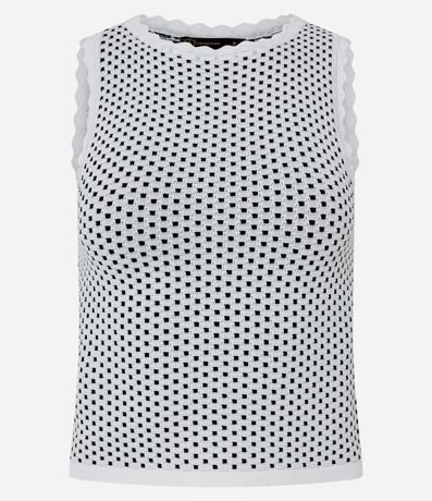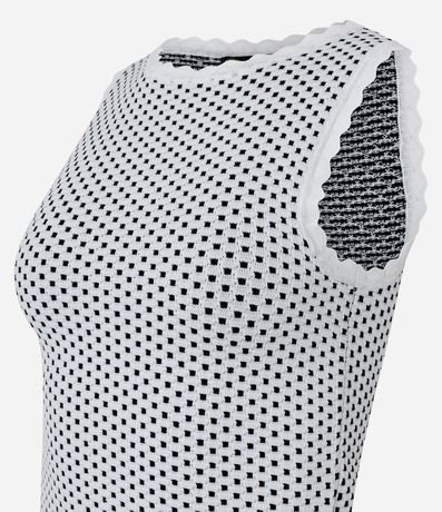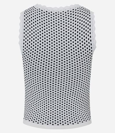 Ref: Blusa feminina, confeccionada em tricô, sem mangas, com borda nuvem e texturas.