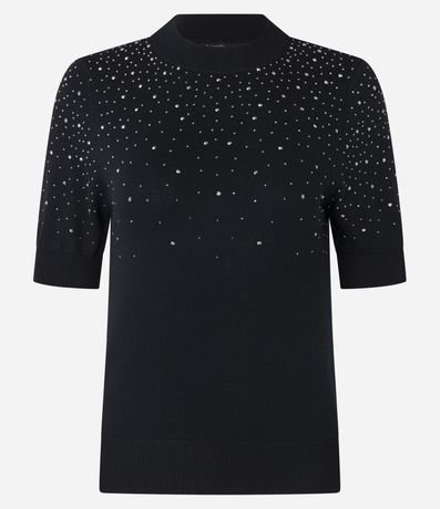 Blusa em Tricô com Brilhos de Strass e Manga Curta