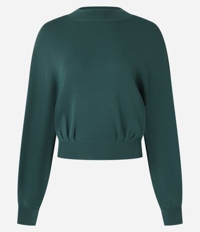 Ref: Blusa de mangas longas, confeccionada em tricô leve com viscose mais sustentável, com gola redonda, ribanas nos punhos e na barra. Possui pregas acima da ribana da barra.