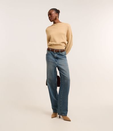 Blusa em Tricô com Cava Deslocada e Pregas na Barra