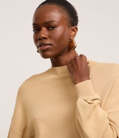 Blusa de mangas longas, confeccionada em tricô leve com viscose mais sustentável, com gola redonda, ribanas nos punhos e na barra. Possui pregas acima da ribana da barra.