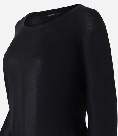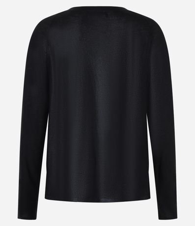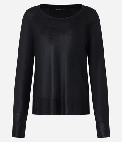 Ref: Blusa confeccionada em tricô leve de acrílico e viscose mais sustentável com cavas raglan, decote redondo e mangas longas. Conta com malha com foil metalizado.