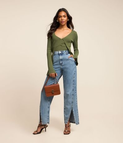 Ref: Blusa feminina, confeccionada em tricô, com decote coração e textura canelada.