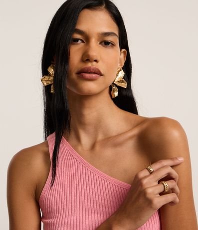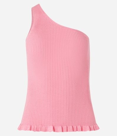 Blusa confeccionado em tricô, com decote ombro único e alça larga. Peça tem babado na barra. Este produto possui poliéster certificado em sua composição, além de ter sido produzido através de processos mais sustentáveis com boas práticas ambientais, sendo ambientalmente mais responsável.