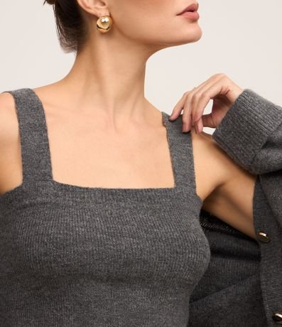 Ref: Blusa sem mangas, confeccionada em tricô de acrílico com poliéster mais elastano. Peça possui alças largas além de tecido com efeito mescla.