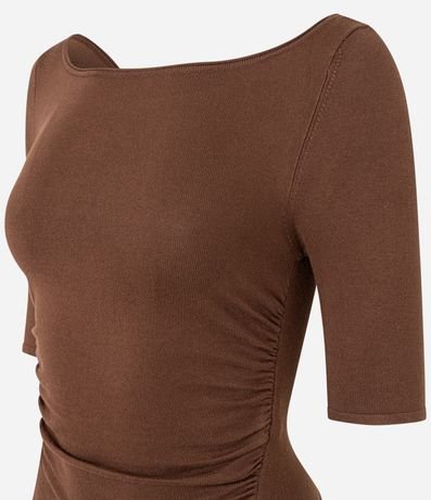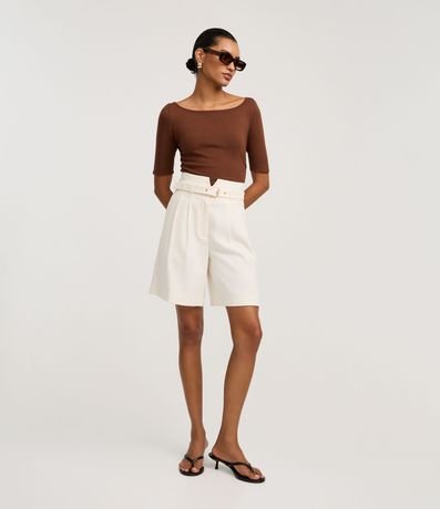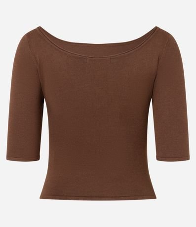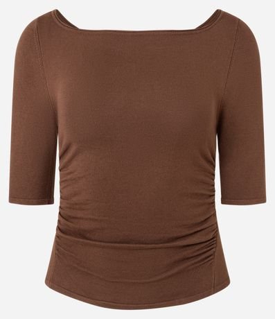 Ref: Blusa de mangas curtas, confeccionada em tricô, com decote quadrado e franzidos. Este produto possui viscose certificada em sua composição, sendo ambientalmente mais responsável.