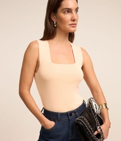 Ref: Blusa em tricô com decote quadrado, alça larga e sem estampa.