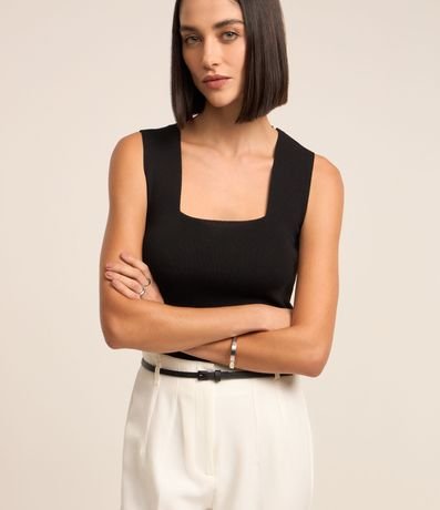 Ref: Blusa em tricô com decote quadrado, alça larga e sem estampa.