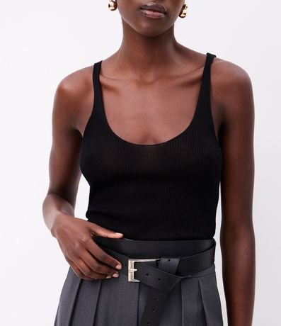 Ref: Blusa sem mangas, confeccionada em tricô, com decote U e alças médias. Este produto possui viscose certificada em sua composição, sendo ambientalmente mais responsável.