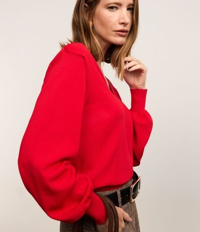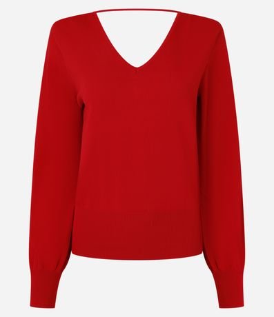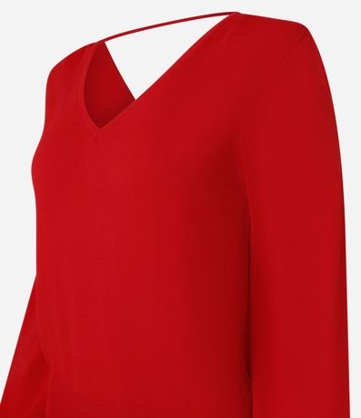 Ref: Blusa de mangas longas confeccionada em tricô de viscose mais sustentável. Peça conta com costas e busto com decote V além de ombreiras.