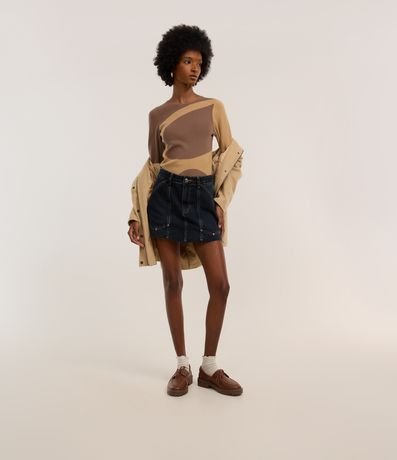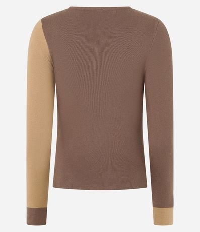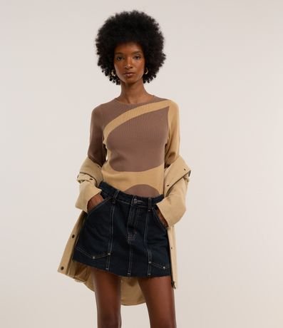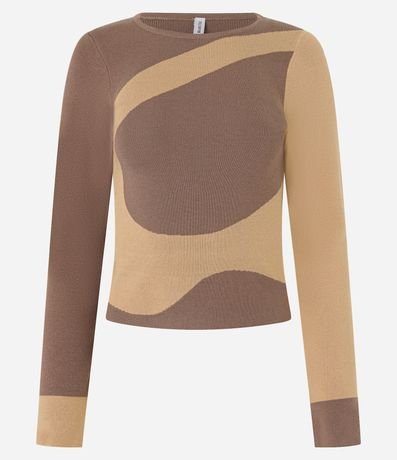 Ref: Blusa manga longa confeccionada em tricô leve, bicolor e com estampa abstrata.