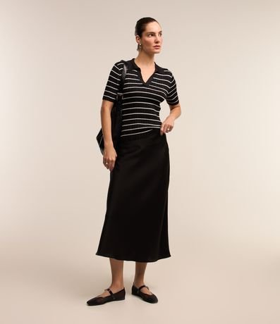 Blusa em Tricô com Estampa Listras e Detalhe em Fio Metalizado