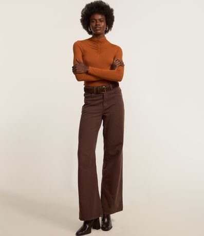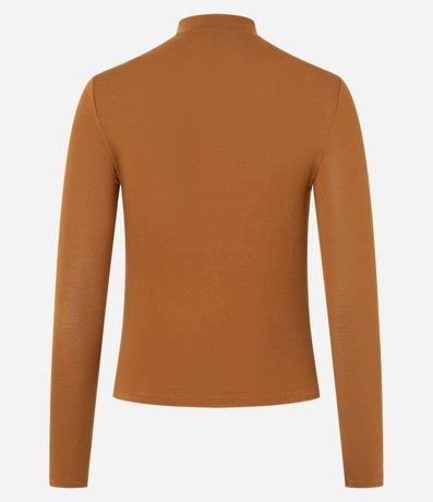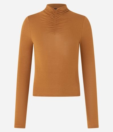Ref: Blusa feminina confeccionada em tricô, com gola altinha e mangas longas. A peça não possui estampa e conta com detalhe de franzido vertical no busto.