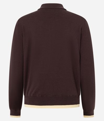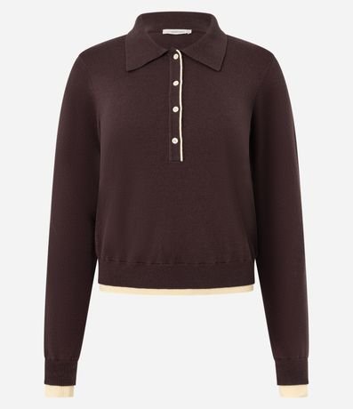 Ref: Blusa de gola e mangas longas, confeccionada em tricô, com botões na vista, ribana nos punhos e detalhes contrastantes. Este produto possui material mais sustentável em sua composição, sendo ambientalmente mais responsável.