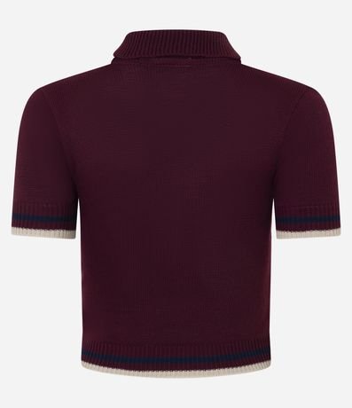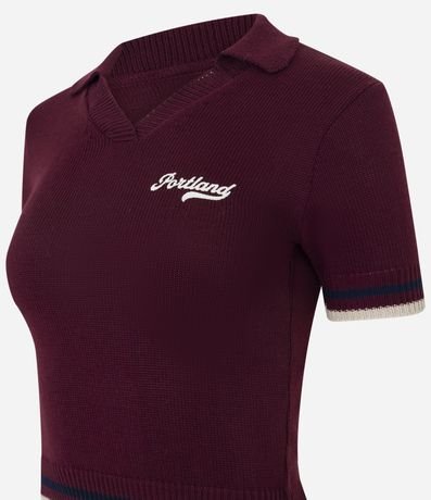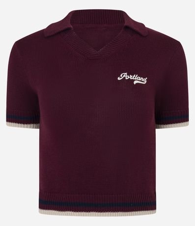 Blusa em Tricô com Gola Polo e Lettering Bordado