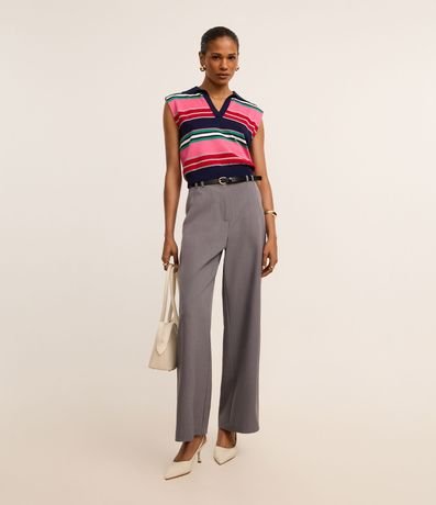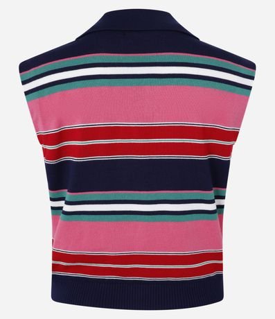 Ref: Blusa sem mangas, confeccionada em tricô com caimento leve, com gola polo e listras horizontais blocadas. Este produto possui viscose certificada em sua composição, sendo ambientalmente mais responsável.