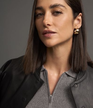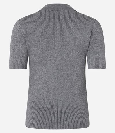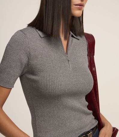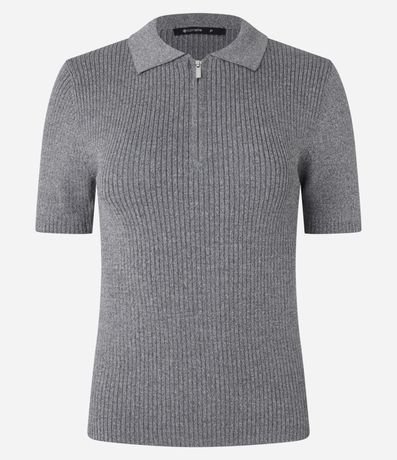 Ref: Blusa com golinha polo, manga curta, confeccionada em tricô leve e com meio zíper frontal.