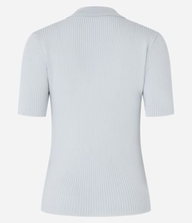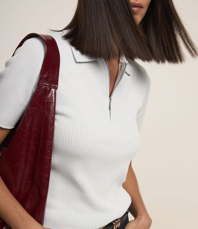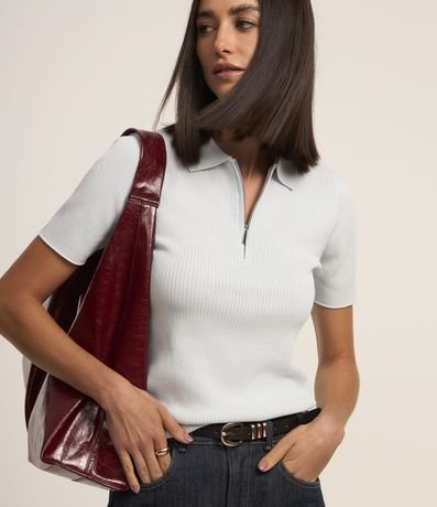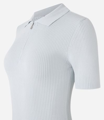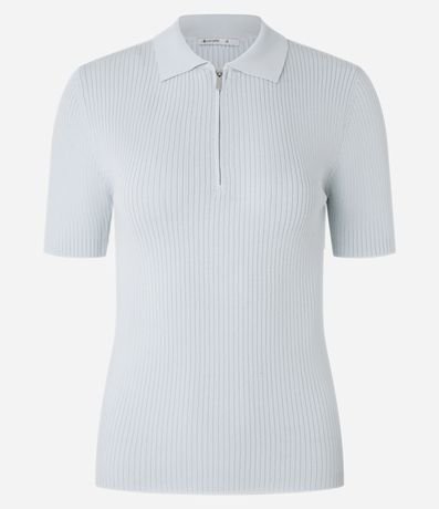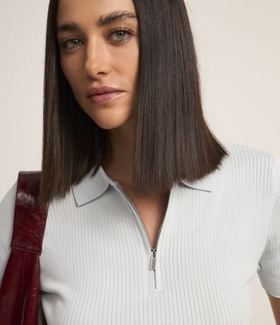 Ref: Blusa com golinha polo, manga curta, confeccionada em tricô leve e com meio zíper frontal.